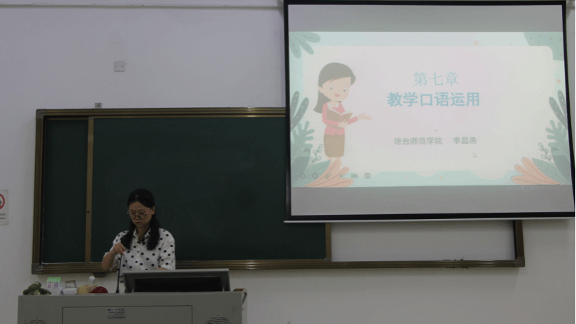 李昌燕老师的参赛课程为教师语言。李老师先是条理清晰地分析了导入语的类型,并辅以情境设计的方法帮助学生理解故事式导入语的特点及作用,课堂环节设计紧凑,课堂内容充实、重点突出,展现出对课程内容的深入理解。