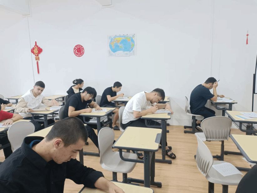 考场上,留学生们心无旁骛,或凝视图片,思索词语的精准表述;或斟酌量词,谨慎抉择;或依据拼音,奋笔书写汉字;或解读句子,快速补全词语,展现出了良好的汉语素养与学习成效。