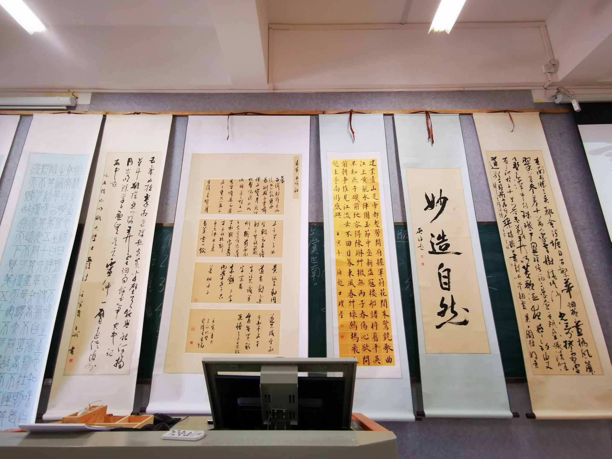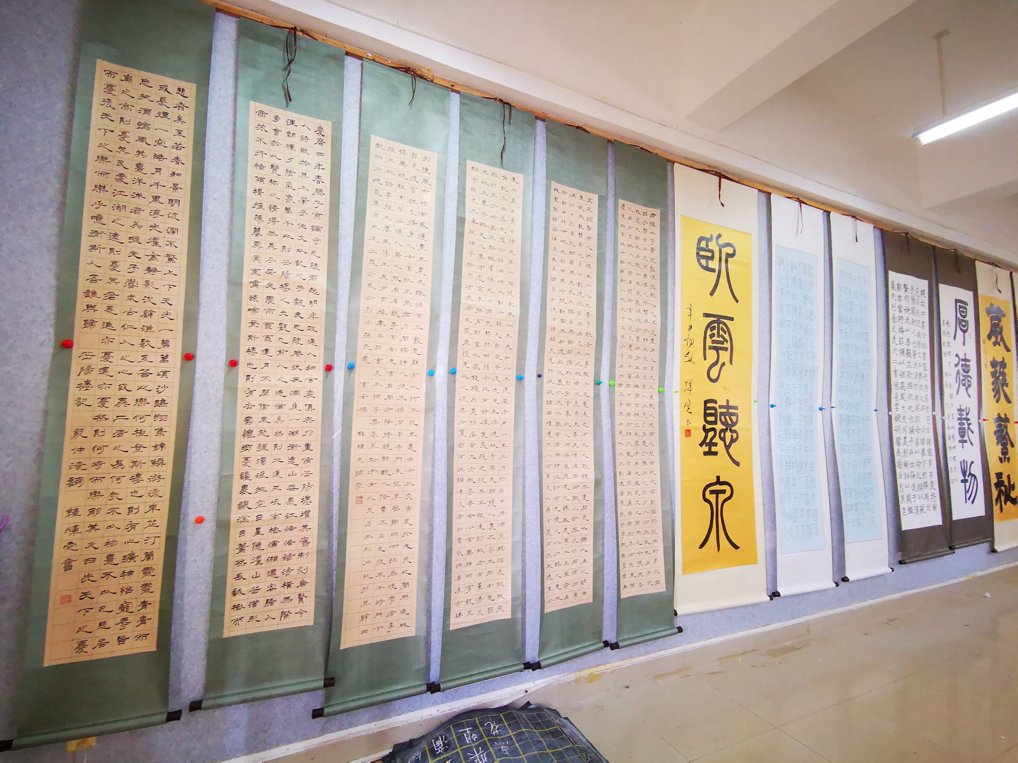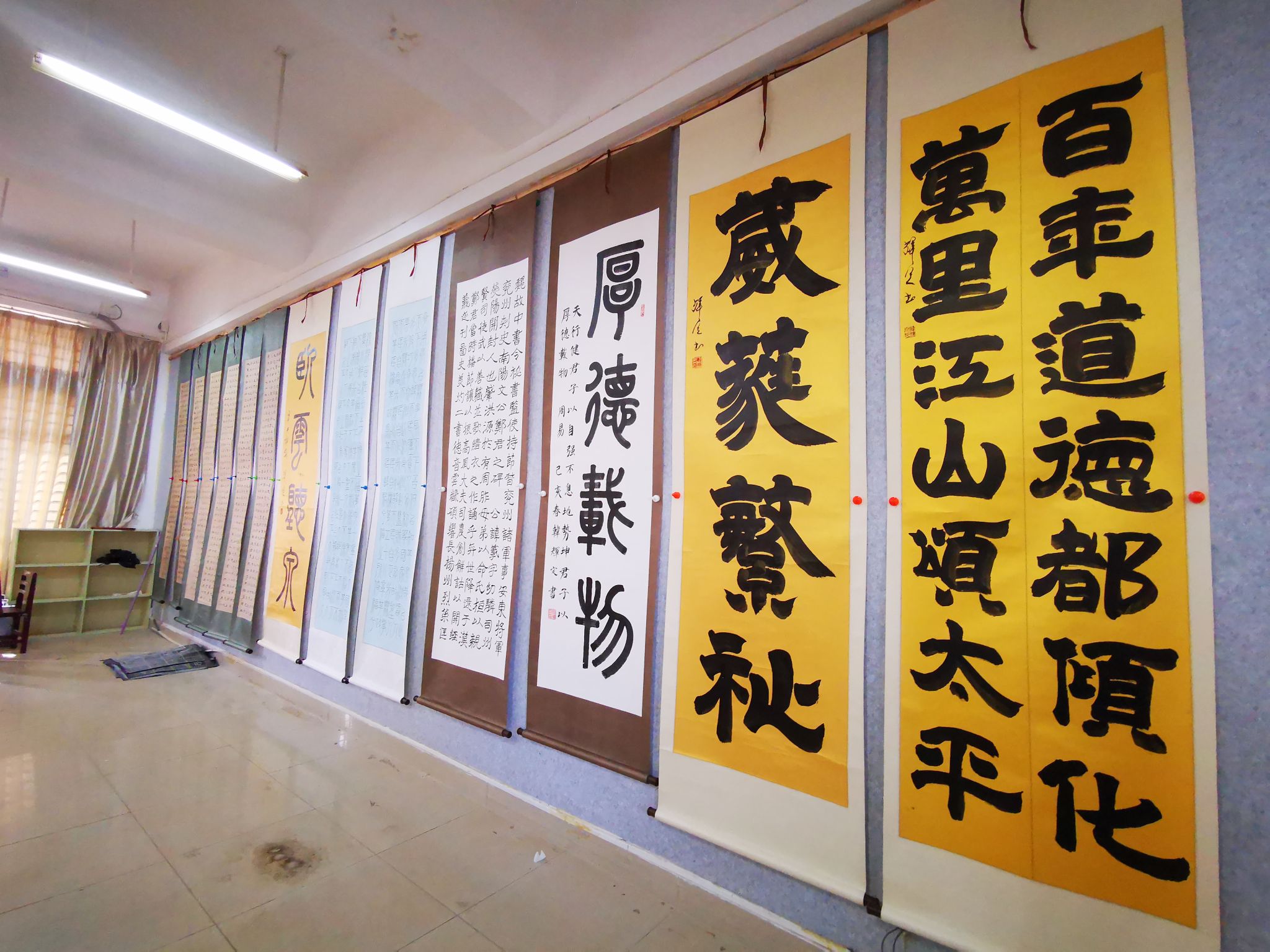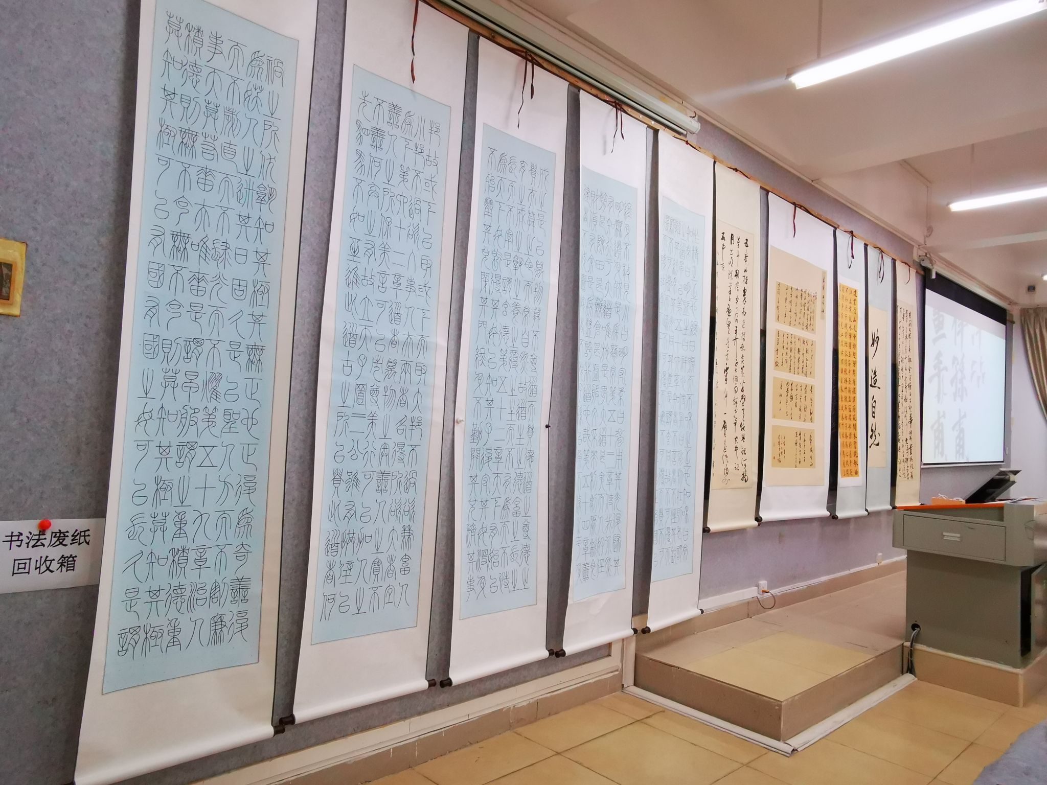 近日,由文学院吴海超副院长、王斌老师和韩辉定老师历时一年多精心创作的160多幅书法作品在书法实训室面向全校师生展出。该活动自筹备以来,得到了文学院领导的大力支持和广大师生的积极响应,这既是我院书法教师书法艺术创作水平的一次集中展示,又为实现学校高质量发展添砖加瓦。