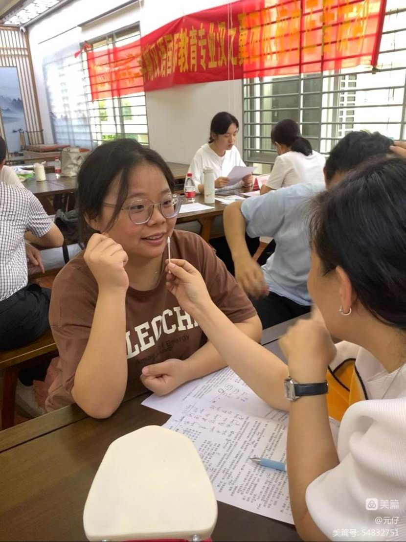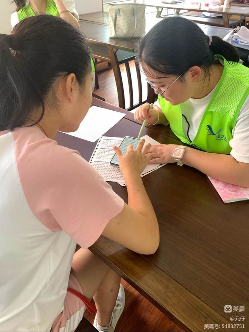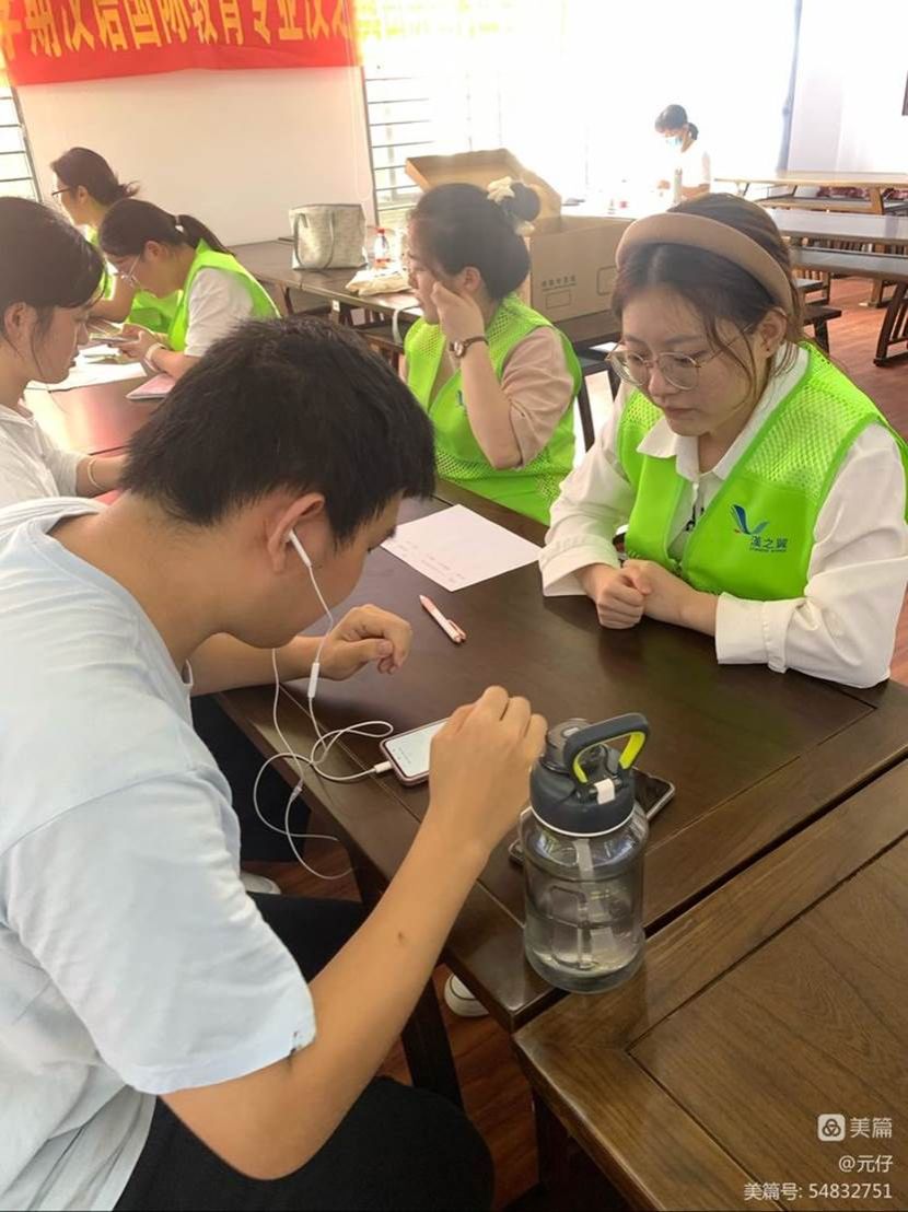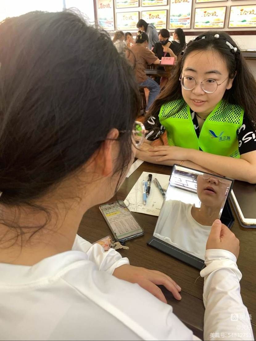活动现场汉之翼团队志愿者利用畅言普通话APP为前来参加活动的学生们提供普通话测试服务,通过与学生一对一的交流对其普通话水平进行初步评估,并详细记录学生练习普通话的情况。