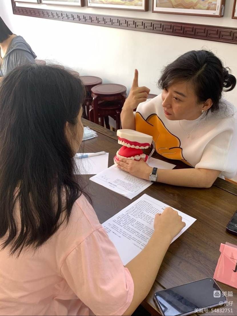 教师利用口腔模具等专业教具为学生提供一对一纠音训练。