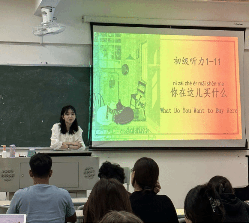 吴皖琼老师的教学内容是汉语听力第11课。吴老师的课教学设计合理,教学环节紧凑,学生课堂表现非常活跃,教学气氛浓厚。