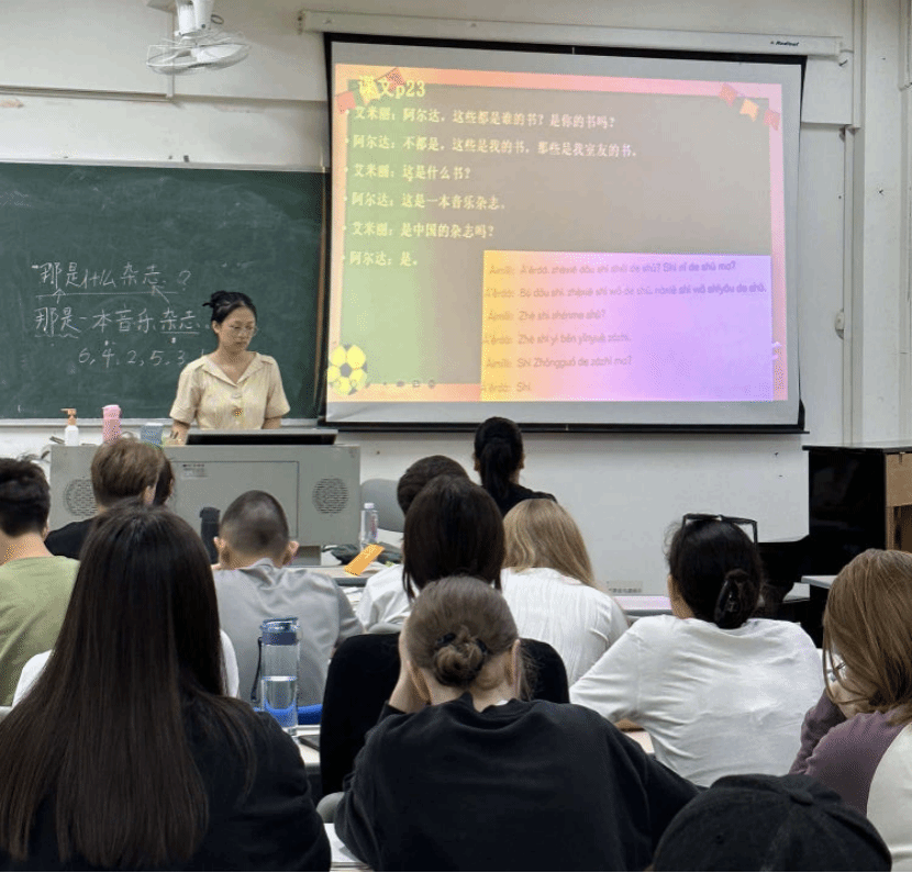 课堂是教学的生命线,教学检查是教学质量监控的常规手段。为全面提升我院教师的教学能力,高质量地完成留学生教学工作任务,2023年10月10日上午,汉语国际教育专业主任朱茹老师和丁莹老师深入留学生课堂,进行常规教学听课检查。
