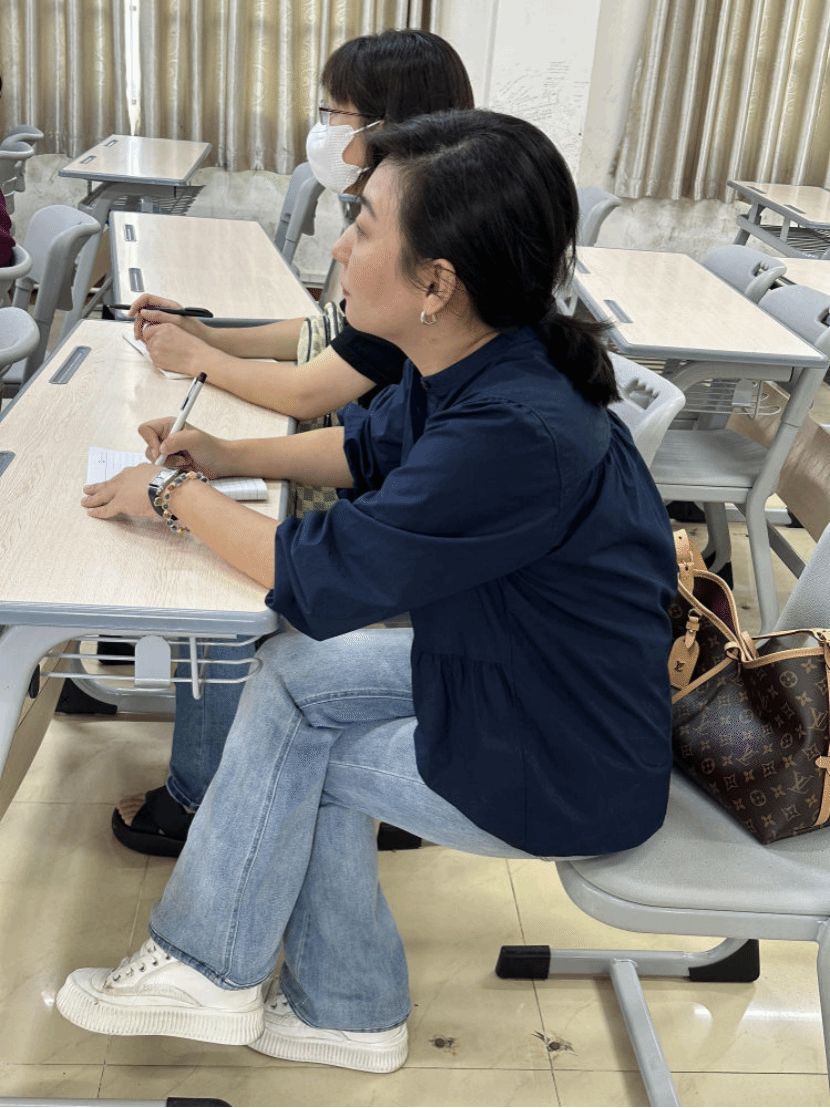 听课过程中,朱茹老师和丁莹老师边听边记,细心观察学生的学习状态。
