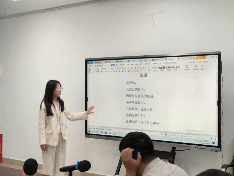 校内评委单百灵老师以书面形式对本次诗会作品进行点评。她总结了本次诗会作品的三个特点:一是传承与创新并重;二是情感真挚,表达多样化;三是具有社会责任感。