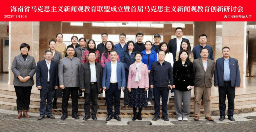 为充分发挥马克思主义新闻观育人功能,进一步促进海南高校马克思主义新闻观教育,2025年1月10日上午,由海南师范大学新闻传播与影视学院发起的海南省马克思主义新闻观教育联盟(以下简称联盟)成立大会暨首届马克思主义新闻观教育创新研讨会于海南师范大学桂林洋校区隆重举行。琼台师范学院文学院受邀成为联盟首批成员单位,文学院副院长王冰冰当选第一届理事会副理事长,网络与新媒体系主任曾艳宏当选常务理事。文学院教师夏爱元、周崧煌等参加会议。