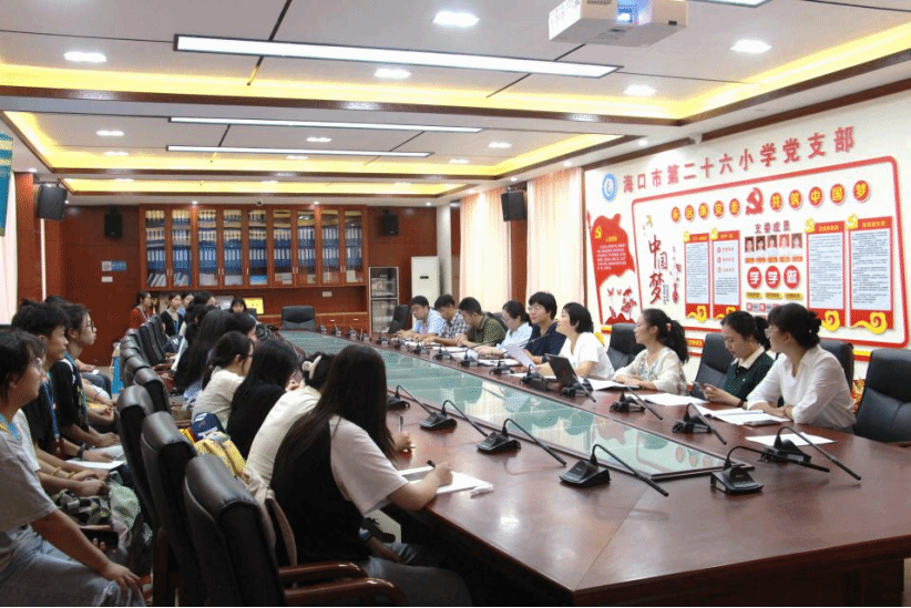 文学院副院长王冰冰对海口市第二十六小学的周到安排和大力支持表达了深深的谢意。她表示,师范生教育实践是同学们将理论知识与实际教学相结合的重要途径,希望同学们能够充分利用这次机会,虚心向校外导师学习,不断提升自己的专业素养。同时,学院几位老师还与校外导师们就如何有效开展教育实践进行了深入交流,共同探讨了提升学生师范素养的有效方法和策略。