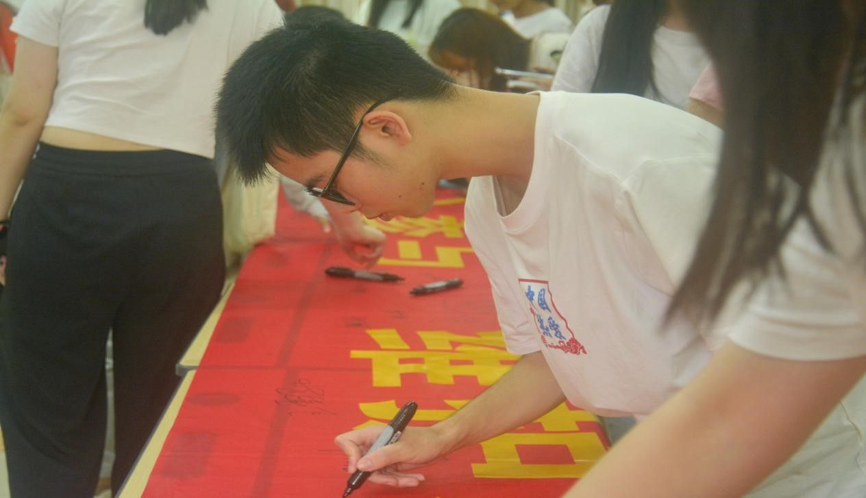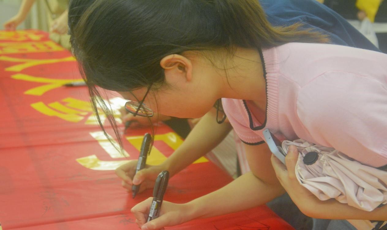 讲座结束后,全体同学在横幅上签下自己的名字。