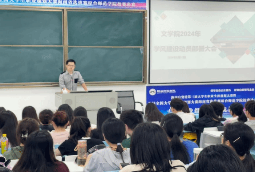 文学院于2024年3月21日在文C201召开了学风建设动员部署大会,文学院全体学生干部参加此次动员。动员会由辅导员植远老师主持。