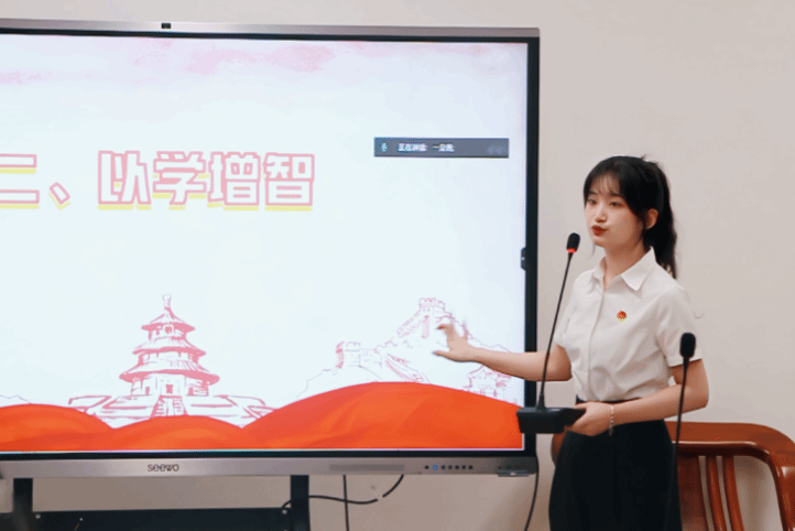 在学习过程中,王芹同学说到,“我要从思想上正本清源、固本培元,坚定理想信念,将党的创新理论学习作为铸造灵魂的驱动力。”她还结合文学院在2021—2023年开展的主题教育谈到,“文学院通过‘理论学习室’、‘文院之星’到‘青年宣讲团’和‘党员来了’开展了一系列活动,让自己提高了专业素养和实际工作能力。”