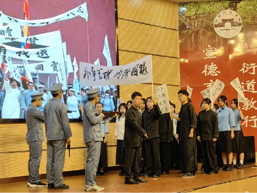 “还我主权,誓死力争”,当掷地有声的口号跨越百年,再一次响在耳边,那段峥嵘岁月如昨日般,波澜壮阔,鲜红的历史触动每一个人,台下的观众们无不为之红了眼眶——为那民族危亡时而奔走呼号,为国家独立而前仆后继的青年人;也为和平年代,为家国社稷而艰苦奋斗,为民族复兴而砥砺前行的青年人。先烈精魂永不灭,他们的精神流传百年。
