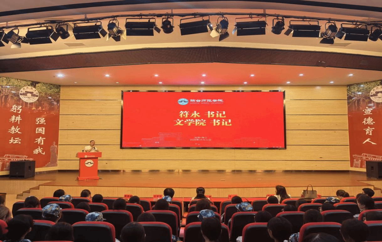为帮助2025级新生深入了解学院历史、做好未来发展规划,9月23下午琼台师范学院文学院2025级新生入学教育大会在图书馆报告厅顺利举行。学院院长邢满党委书记符永、副院长吴海超王冰冰、中文系主任刘清虎、汉语国际教育系主任韩笑及辅导员出席大会,全体2025级新生参会。