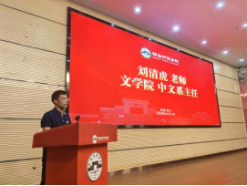 学院院长邢满围绕“一个中心、两个基本点”的培养理念为全体新生作学院情况介绍。她从学院的办学历史、专业特色、师资力量及发展愿景等方面展开,细述学院多年来的深耕成果与亮眼成绩。邢满院长的讲解既有对学院深厚底蕴的回顾,也有对专业发展前景的展望,让新生们全面了解了学院的过去、现在与未来,进一步坚定了大家在文学领域探索求知的信心。