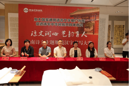 在第28 届全国推广普通话宣传周到来之际,琼台师范学院为了加大国家通用语言文字推广力度,促进铸牢中华民族共同体意识,传承海南优秀传统文化,培养新时代自贸港文化建设者。2025年9月23日下午,琼台师范学院在琼先楼一楼大厅举办“琼文润心,艺韵育人”海南诗文主题规范汉字书写大赛。本次比赛由琼台师范学院国家语言文字推广基地主办,文学院承办。莅临此次比赛现场的嘉宾有:校党委委员刘湘洪副书记,校党委委员王琰春副校长、学工部叶泽波副部长、文学院党委符永书记、文学院邢满院长、文学院吴海超副院长、文学院王冰冰副院长、校团委丘彬老师,教务处杜桂来老师等。