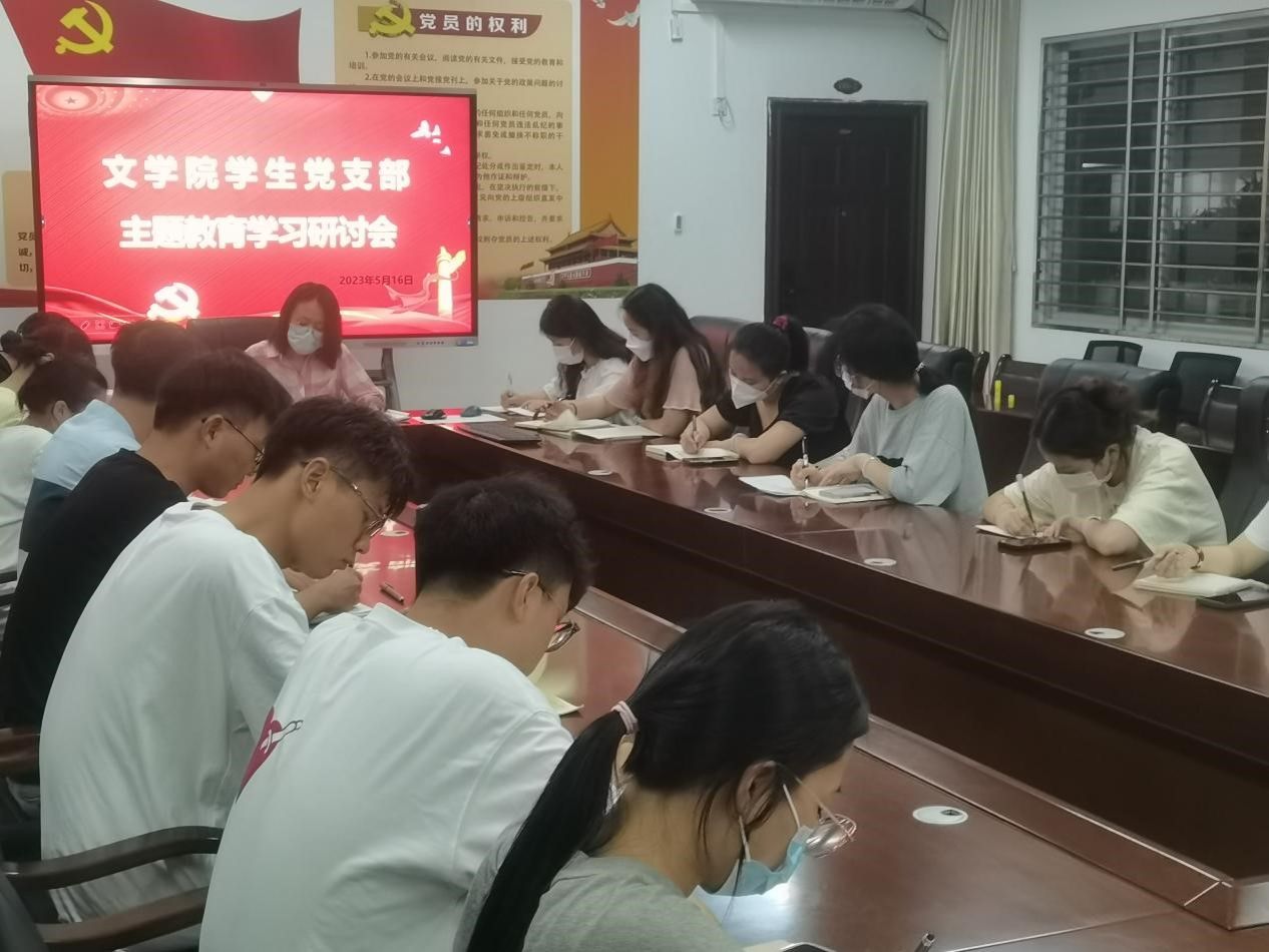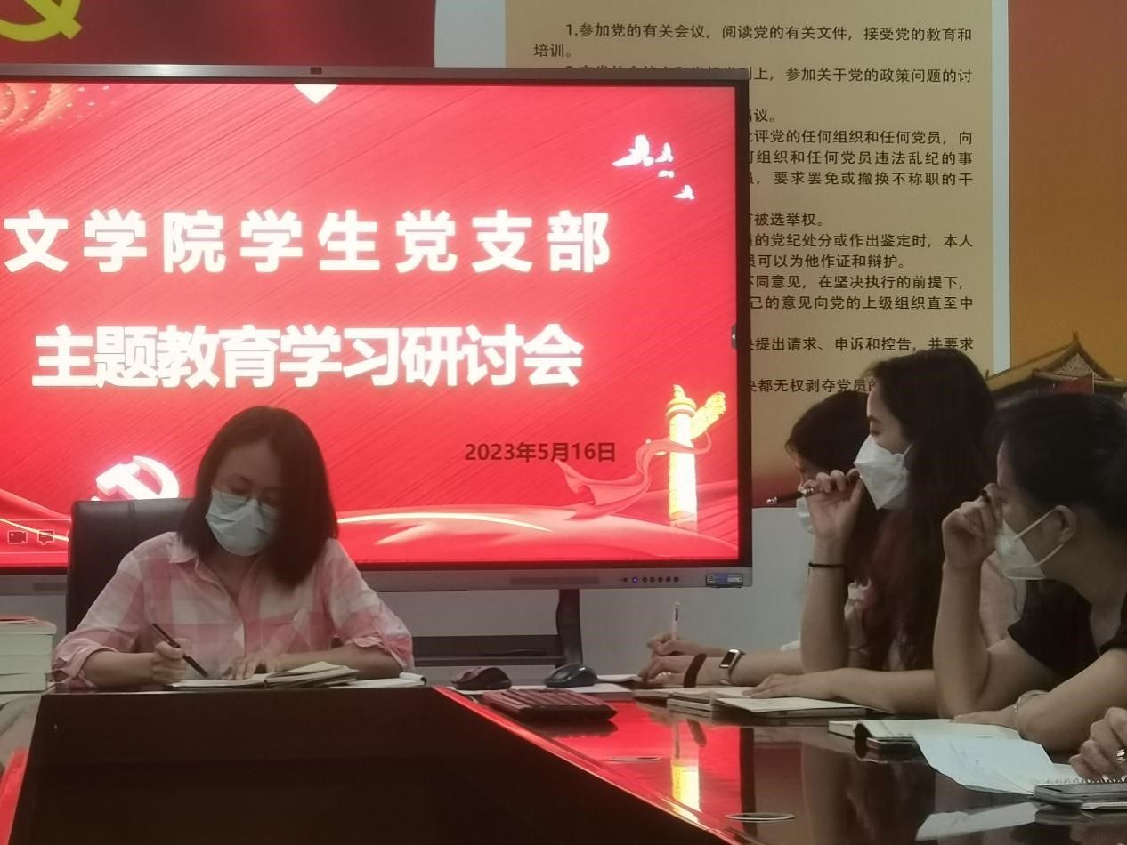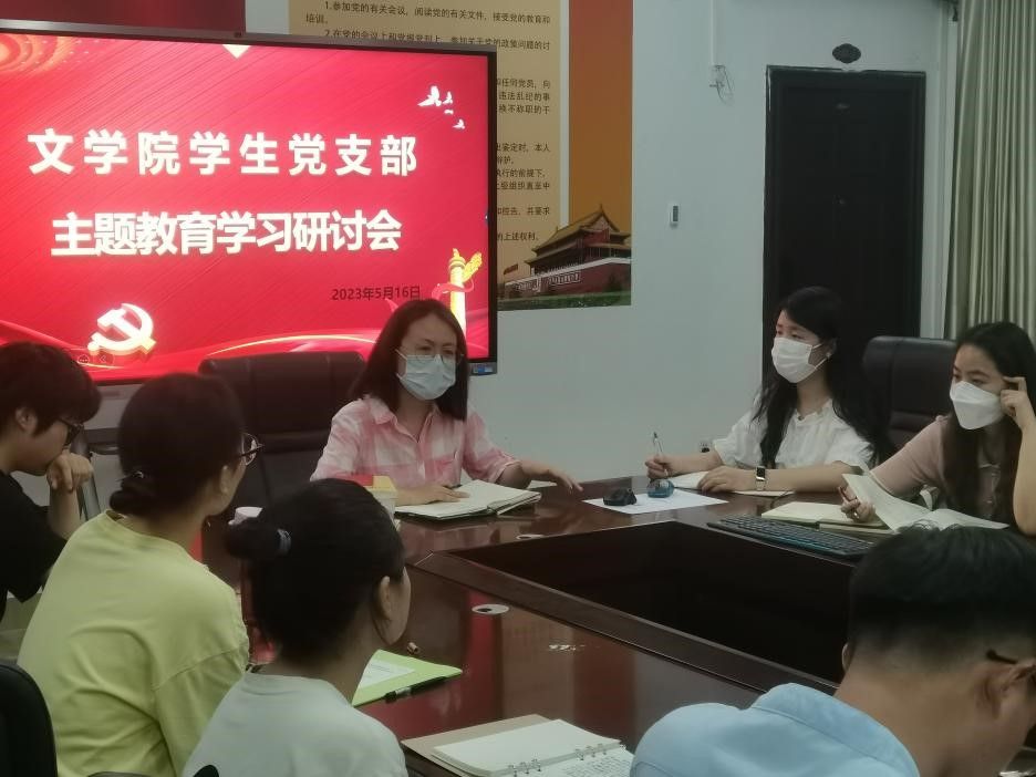 学生党支部作为高校基层党组织,是党联系广大青年学生的桥梁和纽带,抓好学生党支部建设是落实立德树人根本任务的重要环节。为进一步推动学生党支部标准化、规范化建设,创建学生党建品牌,涵育样板党支部,2023年5月16日晚,文学院学生党支部在文B103会议室召开学生党支部主题教育学习研讨会。学院马中力老师、孙雪梅老师、潘虹老师以及文学院党支部全体学生党员及党的发展对象参加会议。会议由马中力老师主持。