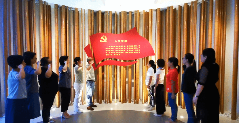“我志愿加入中国共产党,拥护党的纲领,遵守党的章程……”在教工党支部书记吴彦的带领下,大家举起右拳,面对鲜红的党旗重温入党誓词,一句句掷地有声的誓词,重新唤醒了党员干部入党时的激情,铿锵有力的宣誓声响彻展厅。