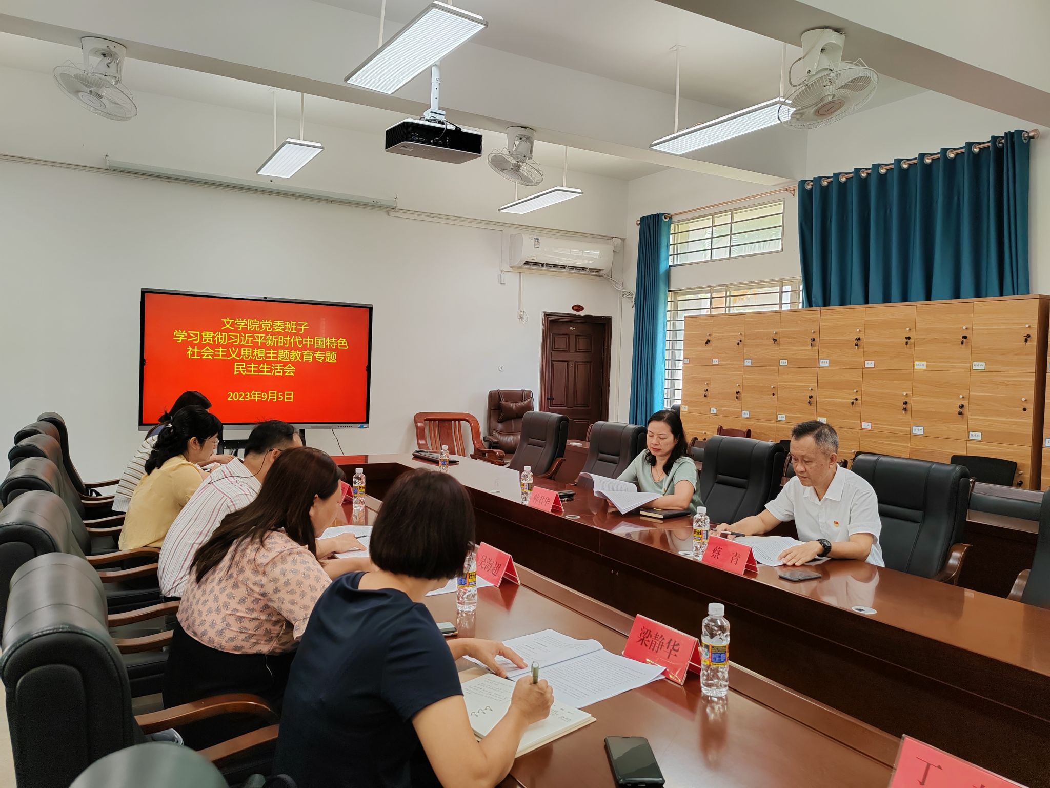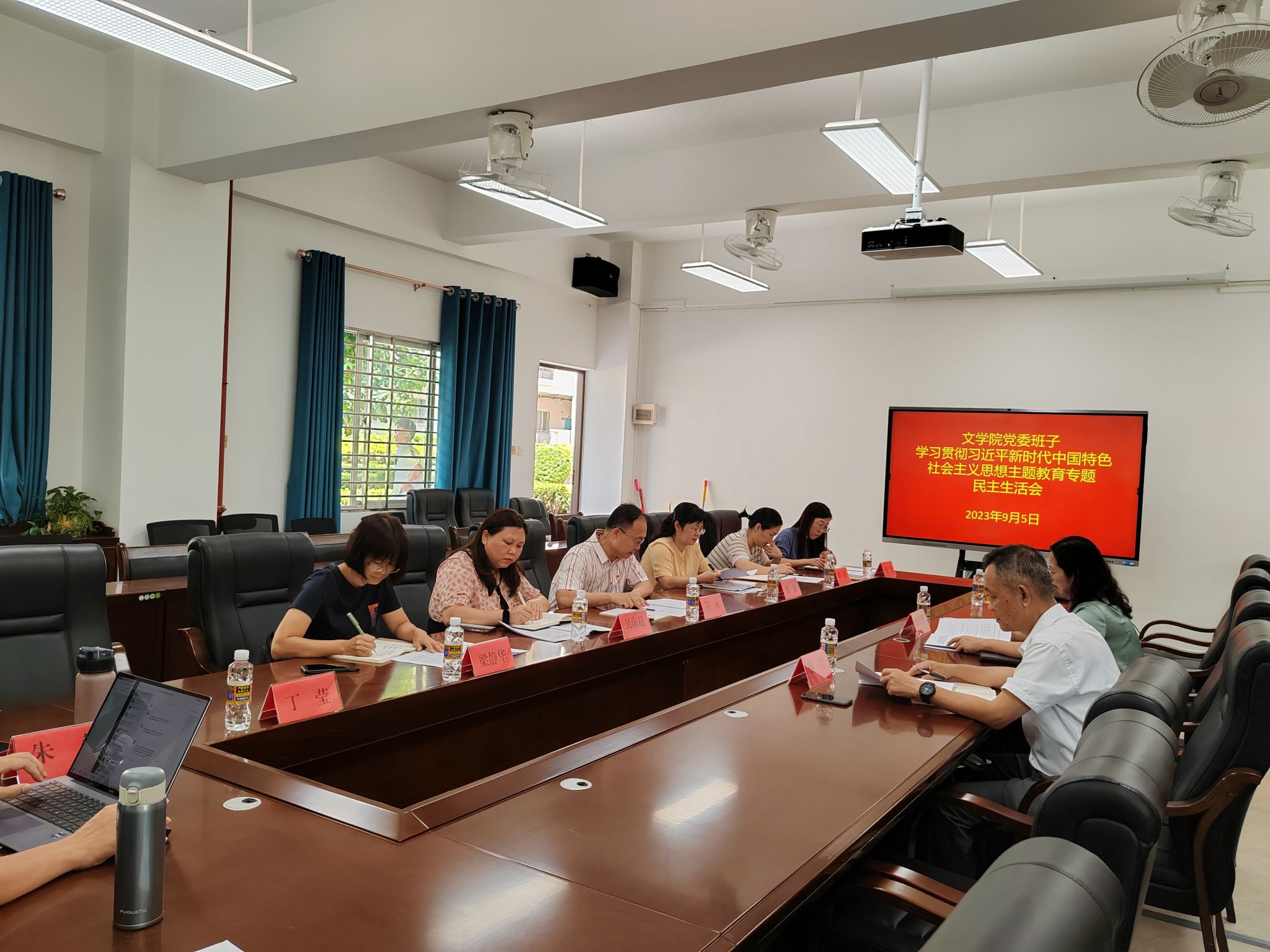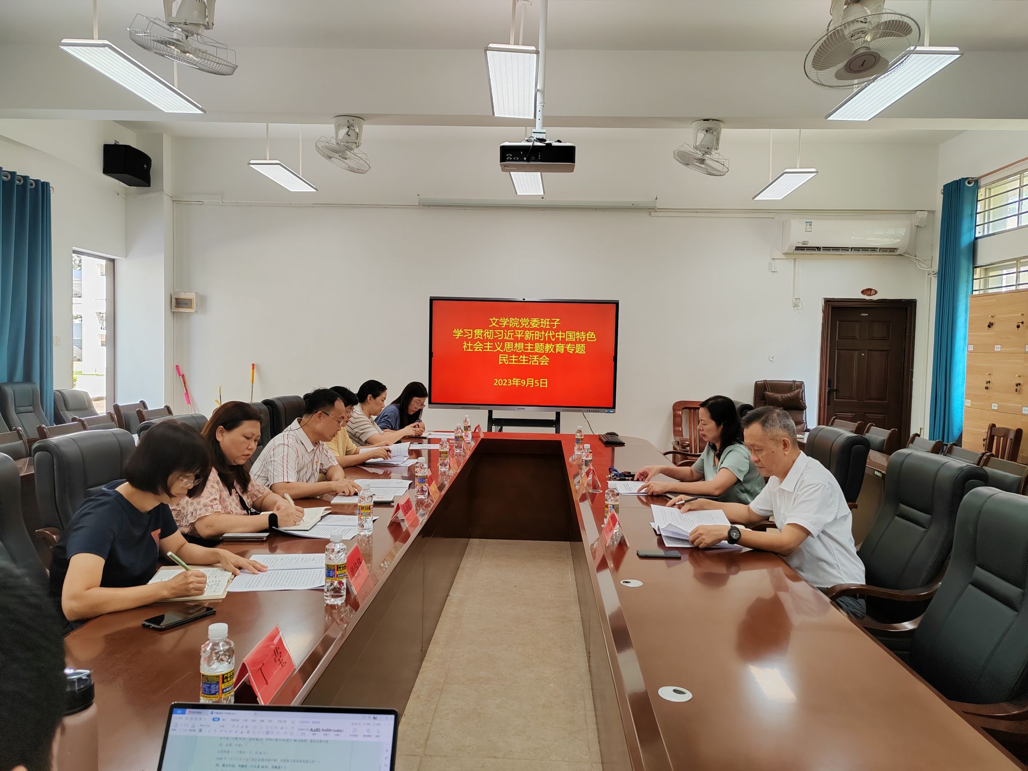 根据《中共琼台师范学院党委关于在学习贯彻习近平新时代中国特色社会主义思想主题教育中开好专题民主(组织)生活会的通知》要求,文学院党委于9月5日15:00在文B103召开了主题教育专题民主生活会。校党委委员副校长韩君华同志、学校第三巡回指导组组长蔡青同志到会指导。文学院班子成员、党委委员参会,学院党委书记符永同志主持会议。