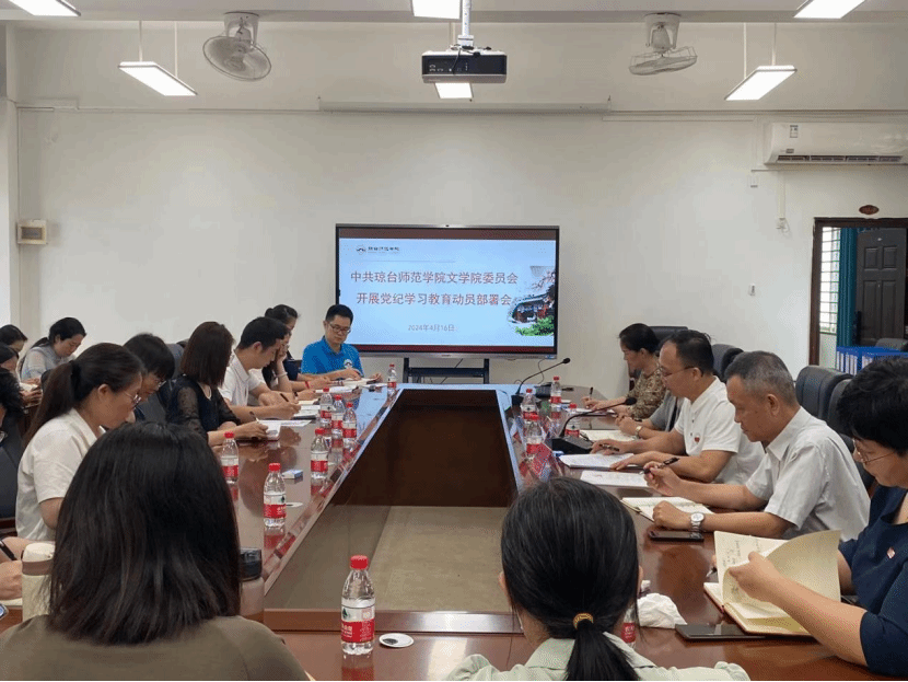 为深入学习贯彻习近平总书记关于党纪学习教育的重要讲话和重要指示精神,认真学习贯彻《中国共产党纪律处分条例》(以下简称《条例》),进一步加强党风廉政建设,提高党员干部的政治素养和纪律意识,根据《中共琼台师范学院委员会关于在全校开展党纪学习教育的实施方案》要求,文学院党委于4月16日上午在文B103会议室召开了党纪学习教育动员部署会。会议由文学院党委书记符永主持,全体党员干部参加了此次会议。