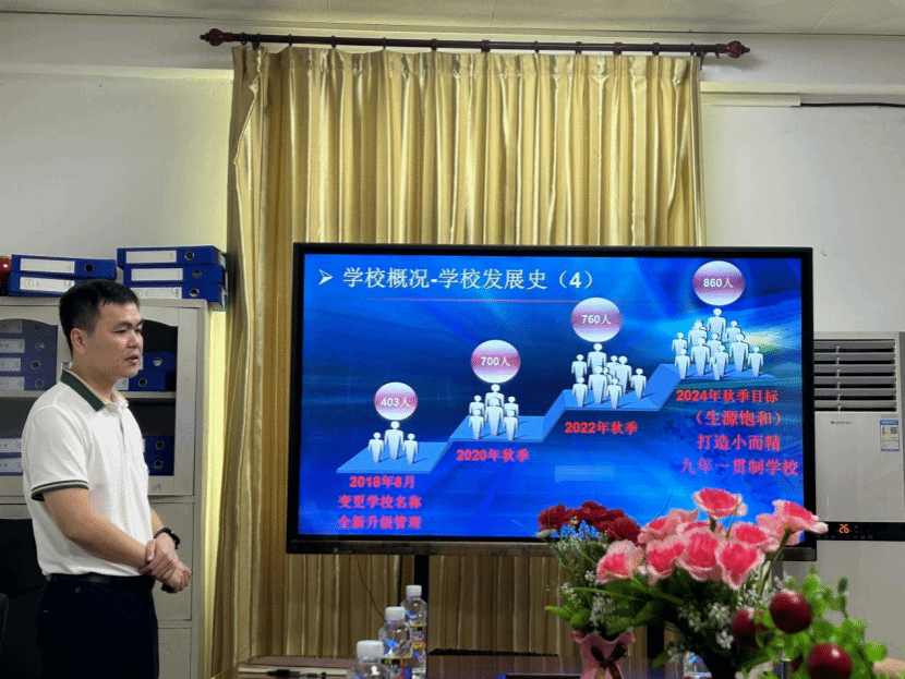 交流会上,海口景美实验学校王小郁校长对符永书记一行人的到来表示热烈欢迎,并简要介绍了学校的发展历程、集团概况、师资力量等。王小郁校长介绍了近年来集团岗位需求情况,表示十分重视与琼台师范学院的交流合作,愿意接纳更多琼台优秀学子来校实习、就业。符永书记就进一步拓展实习合作和就业育人等方面进行了探讨和交流,双方在创新人才培养等方面达成了初步合作意向。