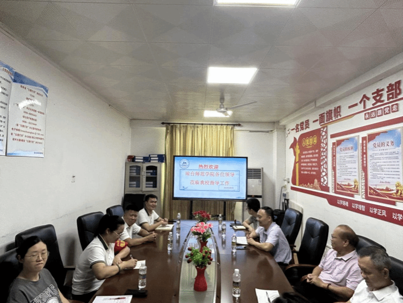 2024年6月5日,琼台师范学院关工委常务副主任王立紫、文学院党委书记符永、海南省普通话与文字应用培训测试中心主任(兼文学院副院长)蔡青、文学院辅导员植远、马中力、韩紫薇一行赴海口景美实验学校开展访企拓岗活动。海口景美实验学校校长王小郁、副校长官永宽及相关部门负责人参加座谈交流。