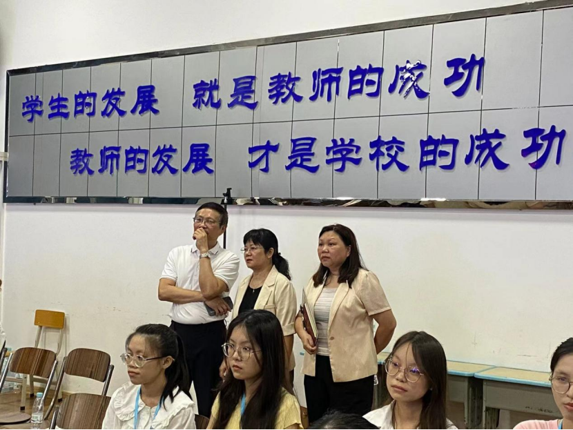 座谈会后,文学院领导一行在景山学校相关领导的陪同下,参观了学校的校园环境和教学设施,并实地考察了文学院学生在学校的见习情况。他们与见习学生进行了亲切交流,了解了他们在见习过程中的学习情况,鼓励他们珍惜见习机会,努力提升自己的专业素养和实践能力。