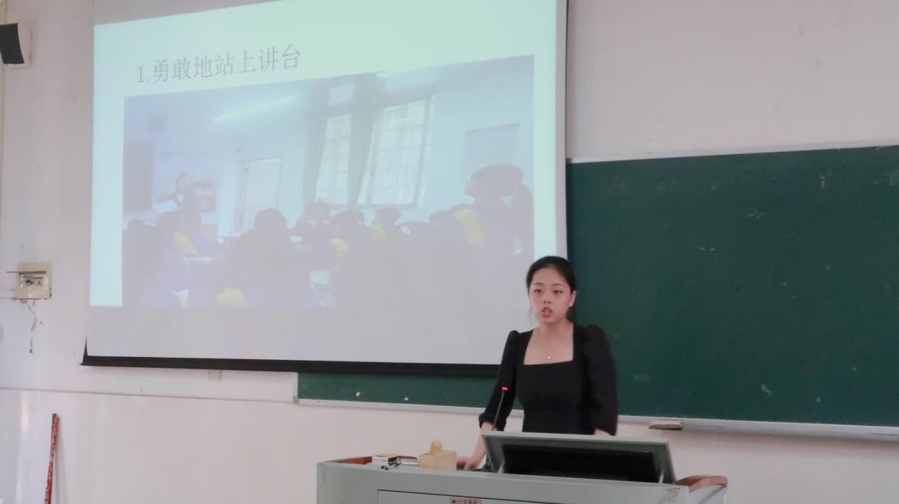2021级汉语言专升本7班李佳从“亲临学生,观摩真知”“真刀实操,实践试讲”“丰愉课后,情感加深”三方面分享自己实习经验。