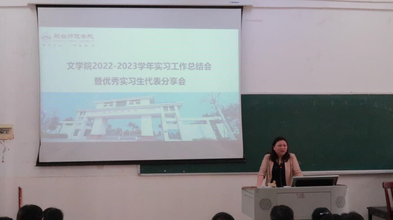 2023年4月18日下午,文学院召开2022-2023学年实习工作总结会暨优秀实习生代表分享会。文学院院长邢满、副院长吴海超、副院长罗敏、网媒系主任曾艳宏老师,实习指导教师钟淑杯老师、王劲玉老师、林智强老师、韩笑老师、刘胜利老师、欧由萍老师、陈超海老师、李光伟老师、欧恋恋老师,辅导员潘虹老师、韩紫薇老师,9名优秀实习生代表以及2019级、2020级学生代表,共150余人参与此次会议。