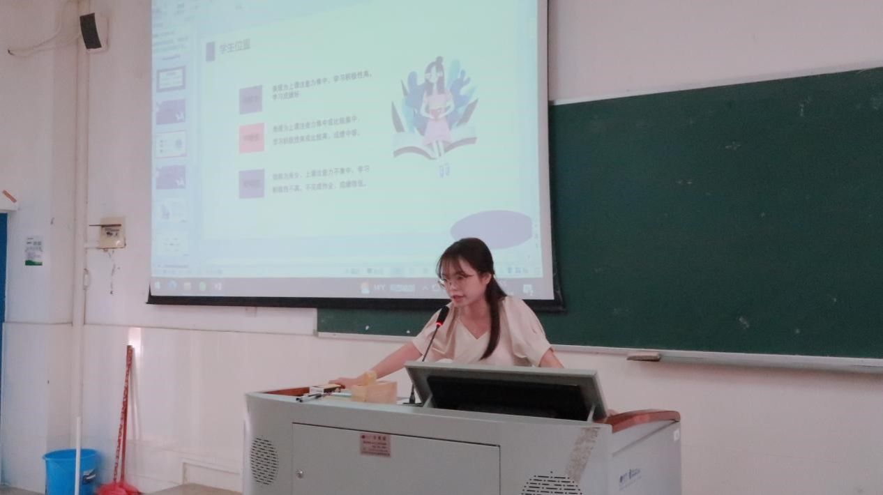 2021级汉语言专升本5班侯琪元从“学生位置”“学习成绩”“性格特点”“家庭情况”四个方面分享了如何关注每个学生的经验。