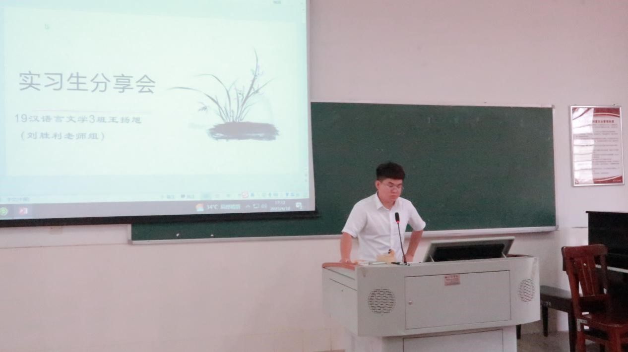 2019级汉语言文学3班王扬旭表示在实习中要学会认知、善于反思、加强沟通、做好规划,保持良好的心态和谦虚的态度,沉淀下来、坚持下去。