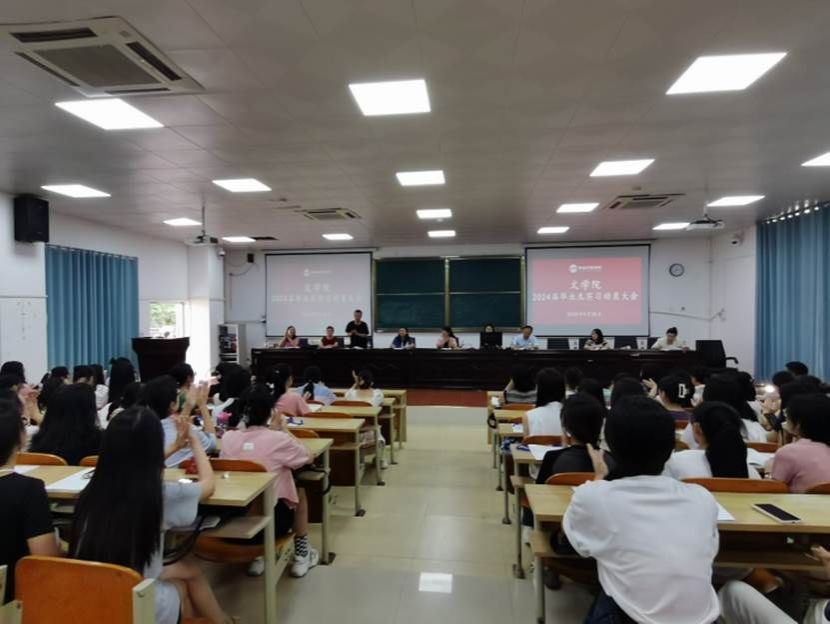2023年9月20日下午,文学院2024届毕业生实习动员大会在文科楼C202召开。本次会议的主持人为孙雪梅老师,参会的人员有邢满院长、符永书记、吴海超副院长、5位实习带队老师、3位毕业班班主任、3位毕业班辅导员及全体实习学生。