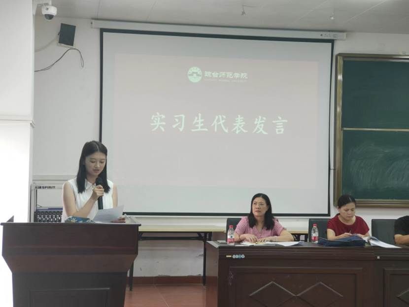 会议第四项,由2020汉语言文学2班周金金同学代表全体实习生发言。她表示全体实习生将努力做有仁爱之心、有理想信念、有道德情操、有扎实学识的“四有”好老师,积极主动地锻炼自己,充分发挥积极性主动性,应用好平时所学的知识,用先进的方法与理念教育学生。实习生们会好好把握此次实习机会,虚心地向优秀的前辈们学习,在实际工作中不忘教师初心,积极争创出色成绩。