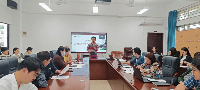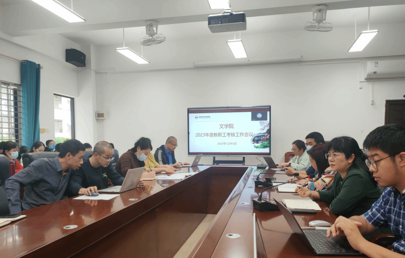 12月5日下午,文学院在文B103会议室召开2023年度教职工考核工作会议。会议由邢满院长主持,符永书记、吴海超副院长、罗敏副院长、蔡青副院长以及文学院全体教职工参加了此次会议。