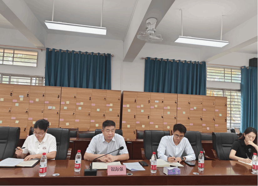 2024年2月23日,银海强副校长带领教务处同志,到文学院检查新学期工作并召开座谈会议,深入了解学院开学各项工作准备情况。文学院邢满院长主持本次会议。