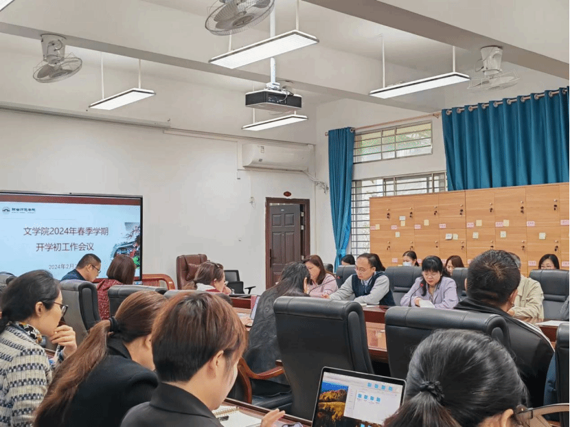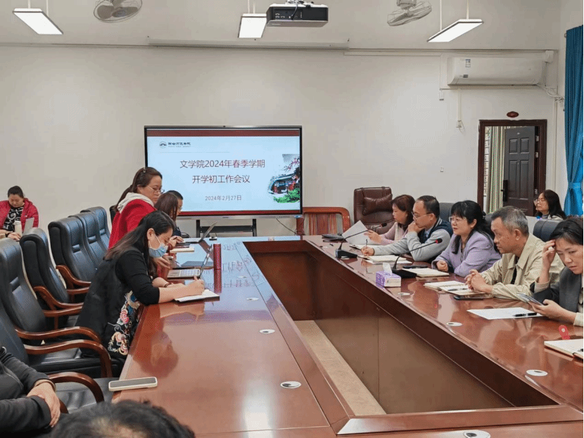为推动新学期各项工作的顺利开展,文学院于2024年2月27日下午14:15,在文B103召开2024年春季学期初工作会议。会议由文学院院长邢满主持,学院领导班子及全体教职工参会。