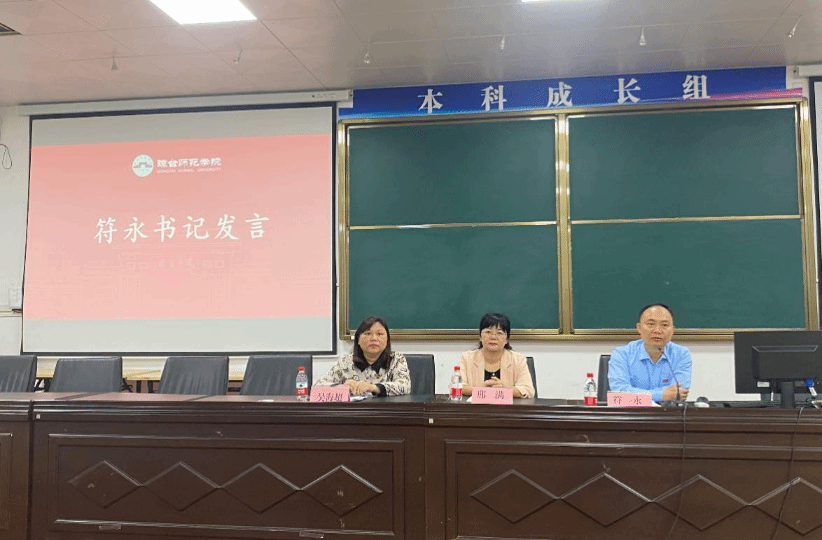 会议第三项内容,由文学院符永书记发言,首先,他对2024届毕业实习工作的圆满结束表示祝贺,对全体实习指导教师实习期间的辛勤付出表示感谢。其次,对毕业班以及2025届的学生提出了三点希望:第一,艰苦奋斗,追求卓越。经过三个多月的辛勤磨砺,同学们在自我教学能力与教师职业成长上都有质的飞跃,期望大家在今后的教师岗位中不断发扬琼台学子“不负海山、敢为琼先”的优良精神,努力实现自我人生价值;第二,不忘初心,懂得感恩。实习工作是对大学期间学习的阶段性检验,今后也应秉承对教育的热爱与初心,带着对全体教师的感恩之心为社会培养更多优秀人才贡献出自己的力量;第三,争取优异,完成学业。实习工作虽已顺利完成,但毕业论文以及相关毕业事项还在稳步推进,同学们仍需努力,完满完成学业。