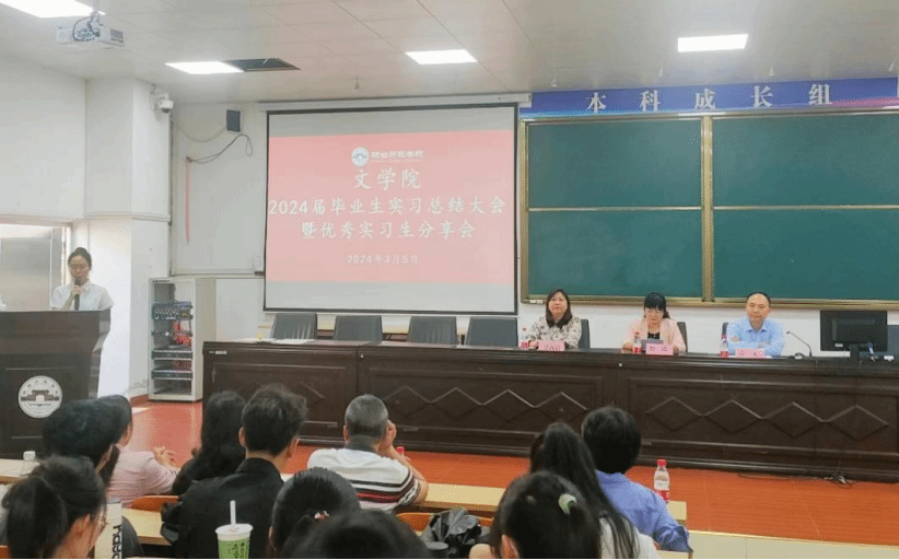 教育是一场向美而行的遇见,实习是一次学以致用的耕耘。为了全面总结和展示实习成果,并更好给2025届毕业生实习树立榜样和提供示范,2024年3月5日下午2:30,文学院在文C202召开了2024届毕业生实习工作总结暨优秀实习生代表分享会。文学院符永书记、邢满院长、吴海超副院长、全体实习指导老师、部分毕业生以及2025届全体同学参加了此次会议。