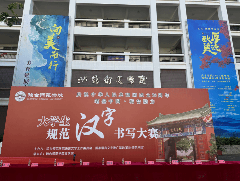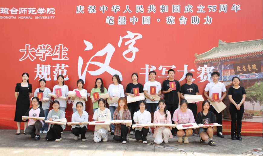 在喜迎中华人民共和国成立75华诞之际,2024年9月28日,文学院在新校区美术广场承办大学生规范汉字书写大赛。这既是为伟大的祖国生日献礼,也是贯彻落实习近平总书记在全国教育大会上强调的“加大国家通用语言文字推广力度,促进铸牢中华民族共同体意识”讲话精神的生动实践。