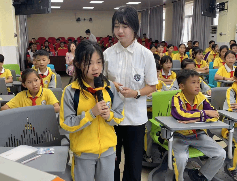 此次活动郑雅姿同学为小学生们带来了一场精彩的宣讲。郑雅姿同学通过丰富的史料和生动的案例,深入浅出地讲解了冼夫人的生平事迹及其对岭南地区的重要影响。在互动环节中,同学们兴趣高涨,积极参与,将现场气氛一次次推向高潮,表现出对冼夫人文化的浓厚兴趣。