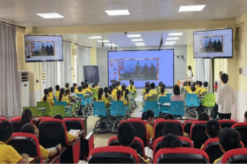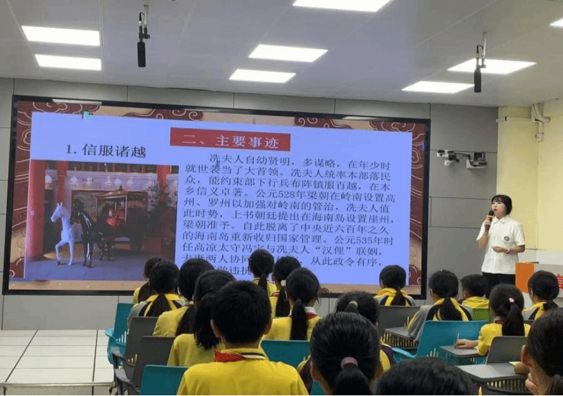 为深化青少年对中华民族共同体意识的理解,提升青少年的民族自豪感和爱国情怀,2024年11月11日,琼台师范学院文学院邢满院长携文学院冼夫人文化宣讲团走进海口市琼山第十一小学开展《弘扬冼夫人文化,铸牢共同体意识》主题宣讲活动。此次活动旨在传承和弘扬冼夫人文化,增强学生对本土历史文化的认知和自豪感。