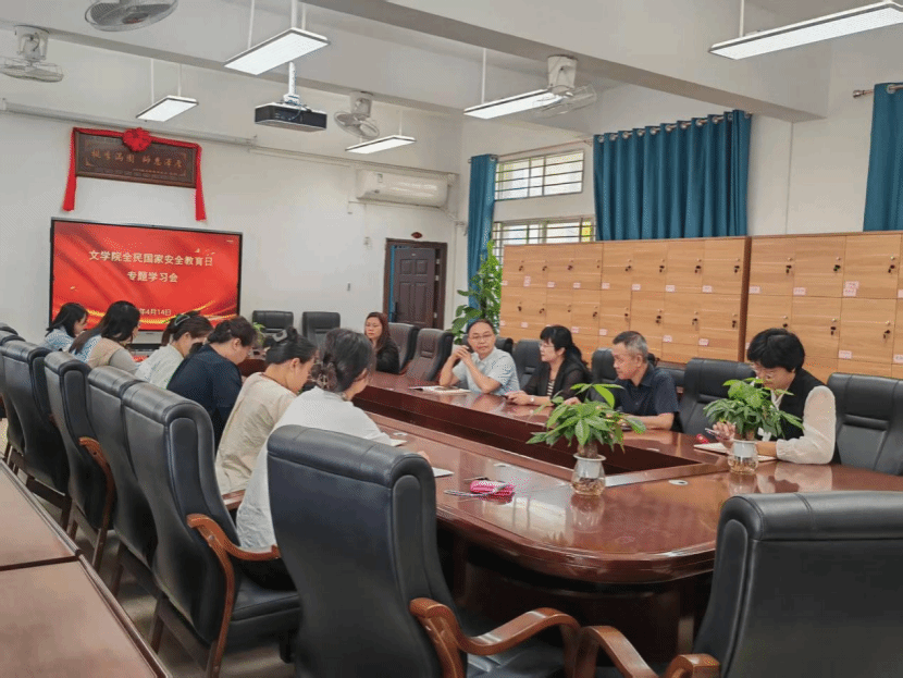 2025年4月14日上午,文学院在文B103召开“全民国家安全教育日”主题学习活动。活动由文学院党委符永书记主持,本次学习聚焦《中华人民共和国国家安全法》(以下简称《国家安全法》),紧密结合高校教师职责,强化党员教师维护国家安全的政治自觉与行动担当。