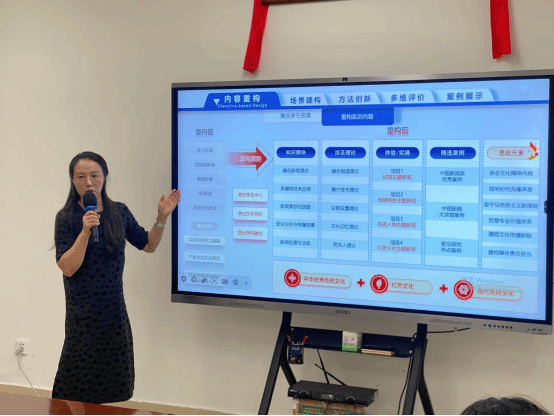 网络与新媒体系曾艳宏主任详细介绍了该专业的发展脉络、建设思路以及取得的相关教学成效。她还重点展示了其主持的国家级一流课程《融合新闻作品创作实训》的教学改革实践,获得与会人员的高度认可。