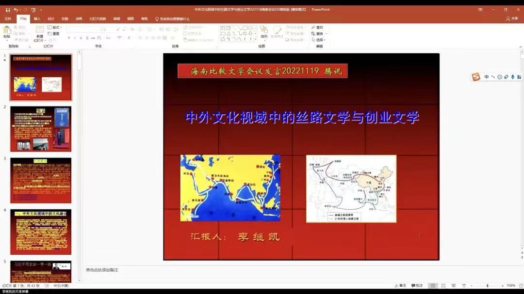 海南省比较文学与世界文学学会会长罗璠致辞中指出,学会是联系文学研究者的桥梁与纽带,是发展海南省比较文学与世界文学事业的重要社会力量,要进一步团结和凝聚海南省比较文学与世界文学学术力量,提升文化自信并打造本土文化创新品牌。