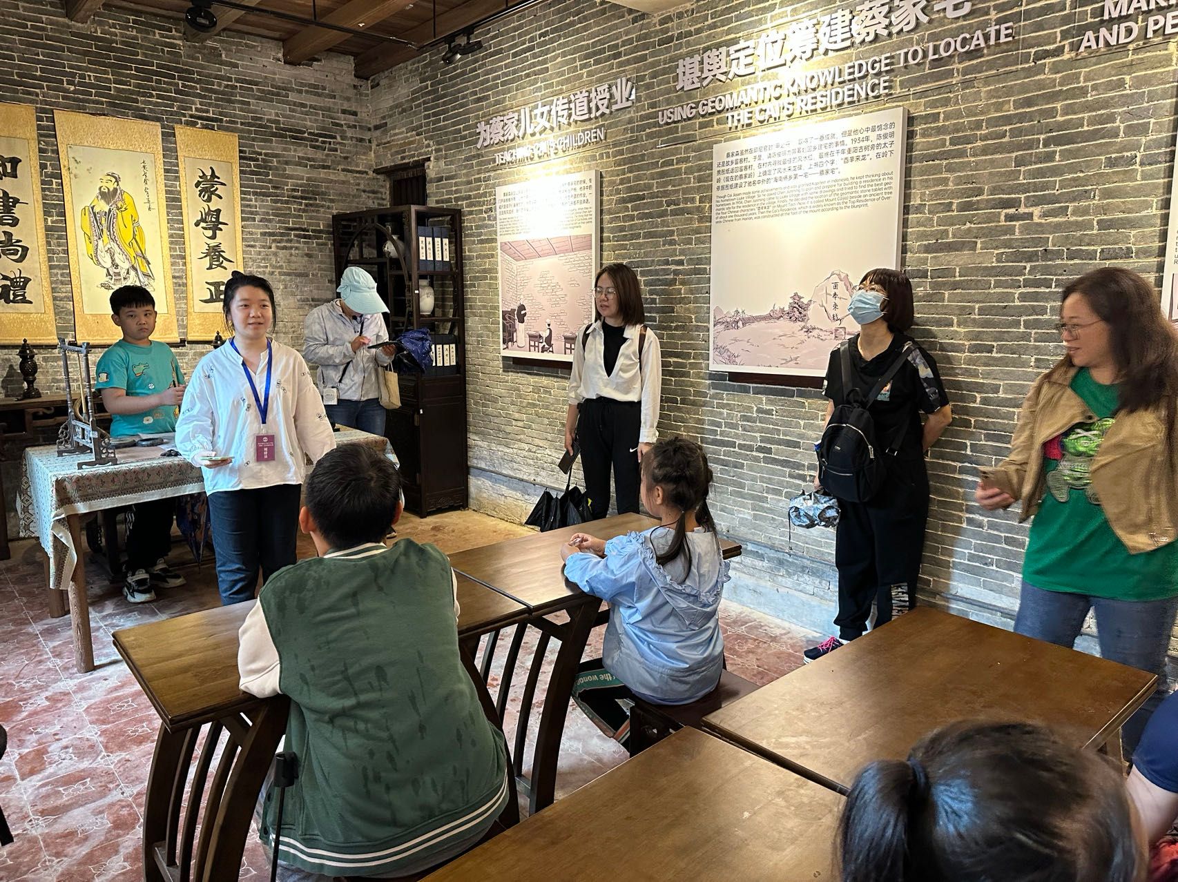 研学第二站研学团来到了位于琼海市博鳌镇留客村的蔡家宅,这座被称为“海南侨乡第一宅”的具有浓郁南洋风格的中西合璧式建筑群,占地面积约1930平方米,建筑面积约3670平方米,始建于民国时期。研学团的孩子们初入宅院,青砖碧瓦映入眼帘,一股浓厚的历史气息扑面而来,当问及学子对于蔡家宅的第一印象时,“庄严肃穆”和“课本上的文章”成为了关键词。随着研学导师的讲解,研学团的孩子们了解了蔡家大院的悠久历史和建筑风格,感受了古建筑之美;随着学子们的实地探访,大家真正进入蔡家宅的世界,了解古村落的奥秘,那些在课本上出现的让人有距离感的古村落形象也终于变得鲜活起来。