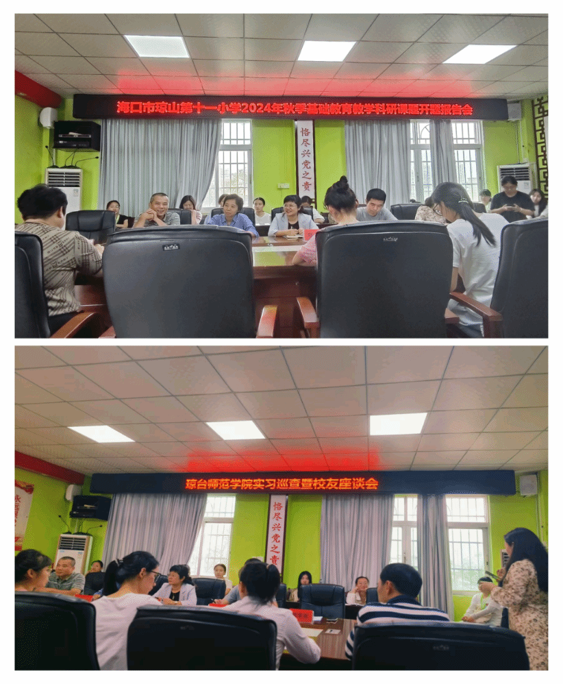 邢满院长带着对实习生们的深切关怀和殷切期望,走进了琼山区第十一小学的校园。会议开始,琼山区第十一小秦晓梅副校长对琼台师范学院一行的到来表示了热烈的欢迎,并简要介绍了学校的基本情况、教育理念以及近年来在教育教学方面取得的显著成绩。